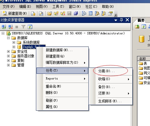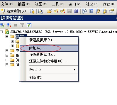 二、正式版Sql2000、Sql2005、Sql2008數據庫有兩種方法,第一種與迷你Sql2000相同備份后再還原,第二種是復制數據庫文件后,重新附件數據庫。