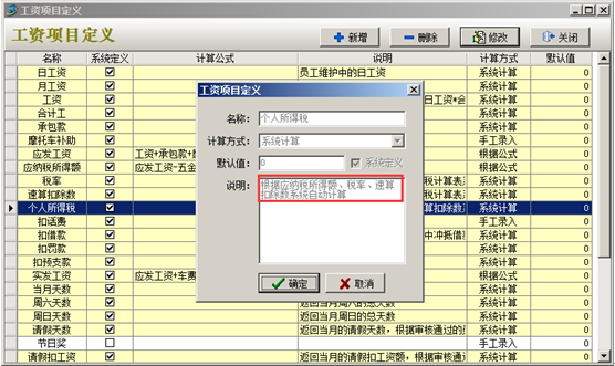 工程項目管理軟件中“五金基數”及“個人所得稅”在工資項目定義中設置好之后,在生成工資表時系統(tǒng)會扣除對應金額。如圖: