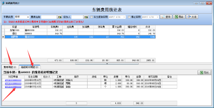 注:當(dāng)前查詢的時間段必須有【其他費(fèi)用單】明細(xì)發(fā)生過[車輛]及[加油費(fèi)]業(yè)務(wù)信息,且[本期加油量]是根據(jù)“數(shù)量”欄目合計得出,本期加油量(L/100KM)=本期加油量/[(期末里程—期初里程)/100]