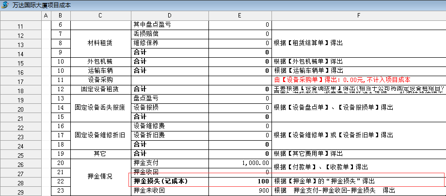 押金損失是計入成本的,可根據【項目成本利潤】模塊查詢得出(下圖)