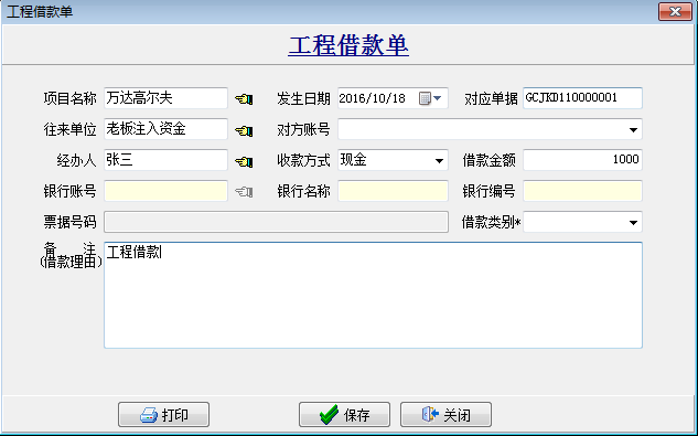 1. 工程借款單