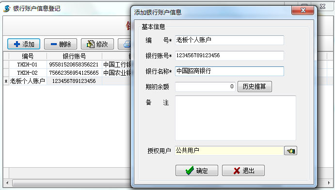2.用老板個(gè)人賬戶新建個(gè)銀行帳號(hào),期初余額為0(因?yàn)椴恍枰涗浝习逅饺藥ぬ?hào)余額)