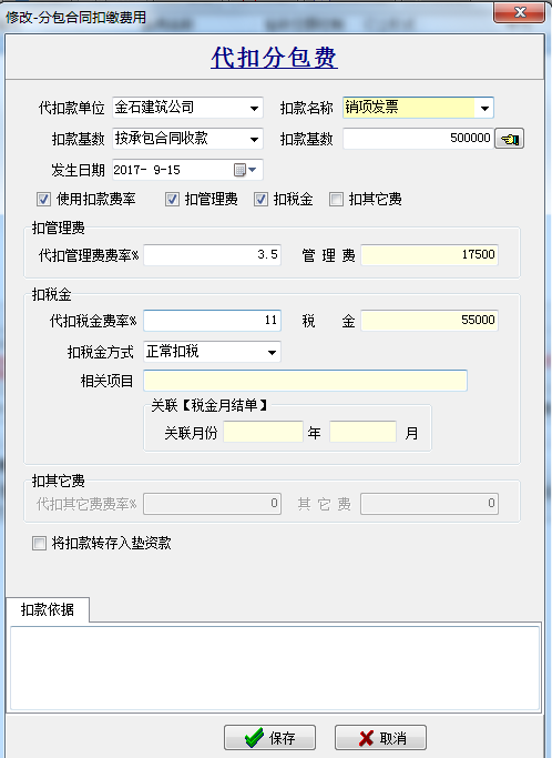①“分包合同”扣繳費用,扣管理費、扣銷項、進項稅