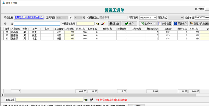 2、行政:根據【勞務考勤單】生成工資表