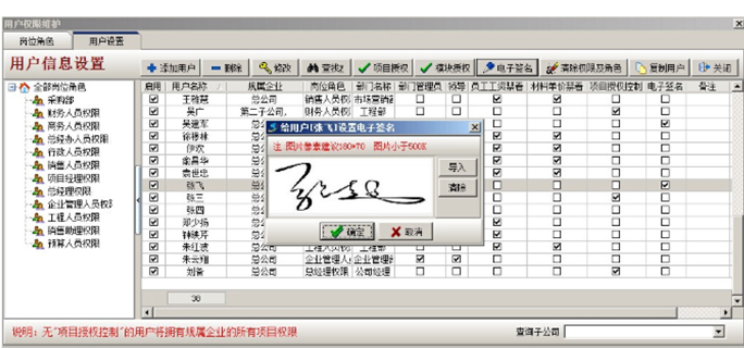 電子簽名制作完成后,點(diǎn)擊【用戶權(quán)限維護(hù)】-【用戶設(shè)置】-【電子簽名】-【導(dǎo)入】