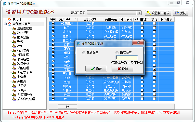 在使用金石工程項(xiàng)目管理軟件的過(guò)程中經(jīng)常會(huì)碰到有的同事升級(jí)了較新版本的新功能,其他同事還在使用老版本不能更好的體驗(yàn)金石軟件新功能,在6.35版本中我們對(duì)此進(jìn)行了限制,可要求所有用戶均升級(jí)最新版本或指定的版本,否則系統(tǒng)將將強(qiáng)制升級(jí),操作流程如下: