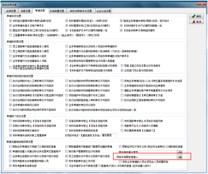 還可以在【系統維護】-【系統全局設置】-【單據設置】設置項目開拓固定查看人,設置好后,設置的人員無需每次設定查看權限。