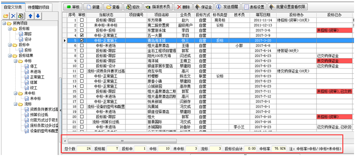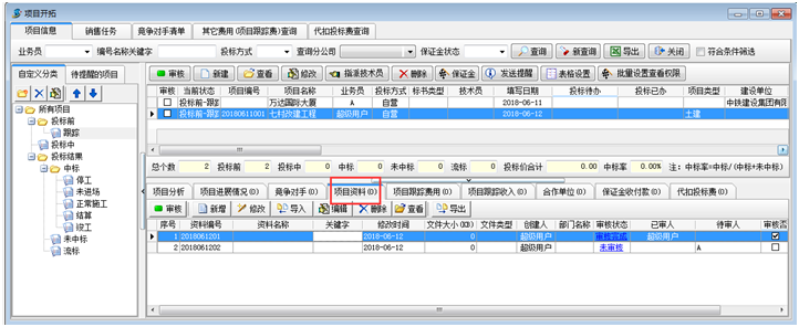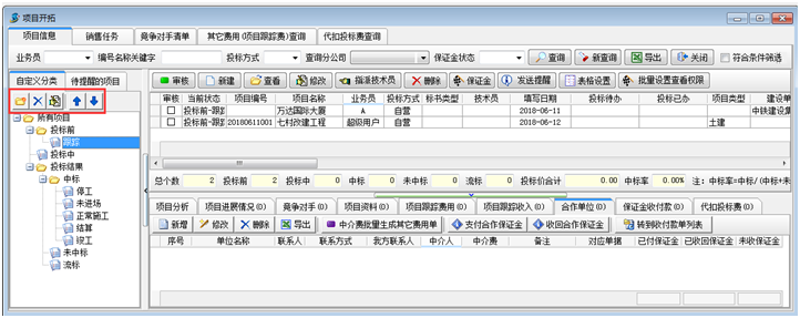 在工程項目管理軟件項目分類維護中,投標前、投標中、投標結果(中標、未中標、流標) 三個節點為系統定義,不可調整。只可以在此分類下建立子分類。