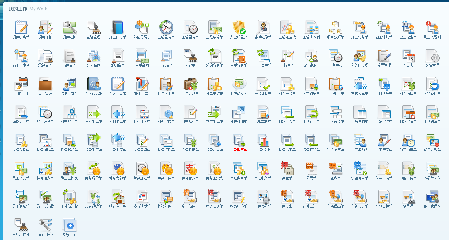 1、在版本6.18中,在導(dǎo)航模塊中新加了【我的工作】模塊,此模塊主要用于普通用戶的常用單據(jù)和查詢按鈕的自定義設(shè)置。初始模式如下圖