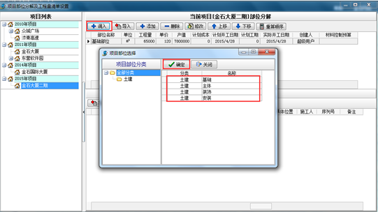 上圖是工地常用部位劃分的部分清單內(nèi)容,下面以上面截圖為例說(shuō)明軟件中工程的部位劃分。
