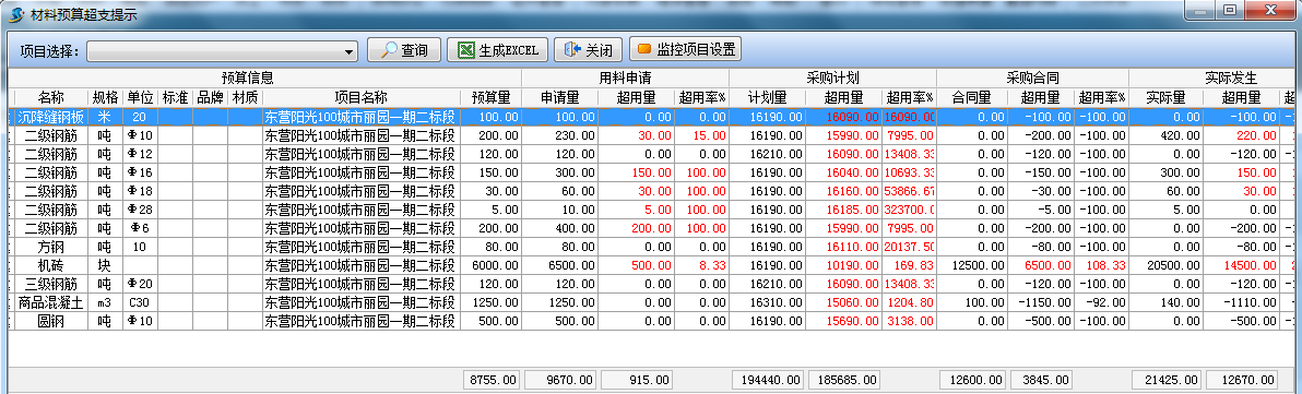 *注:上圖中字體變為紅色字體的為超與預算對比量,負數數值為在預算范圍內