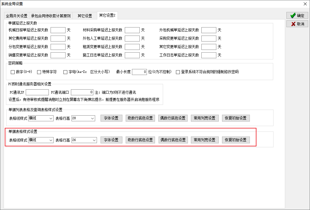 單據表格中一行的行高,當字體小五時,推薦行高26,字體10號時,推薦行高28。