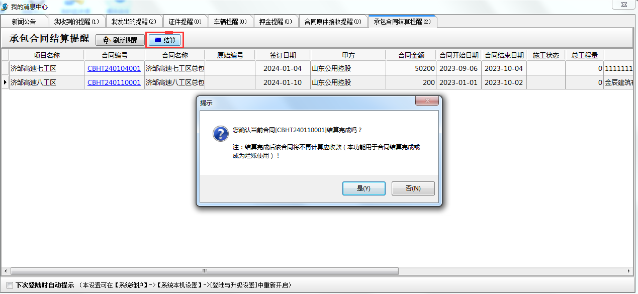 如果項目結算完成,可以點擊結算選項取消提醒,也可以填寫工程結算單選擇終審結算取消提醒。