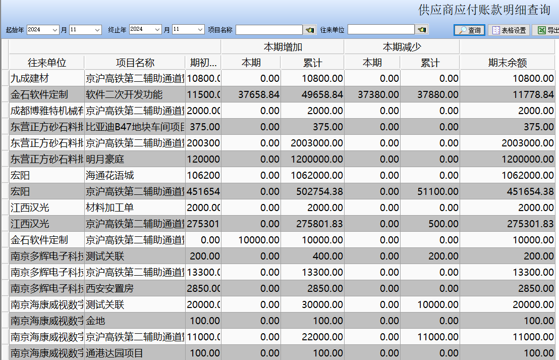 應付賬款明細查詢:以項目名稱為基準,統計供應商年度、月度應付款情況