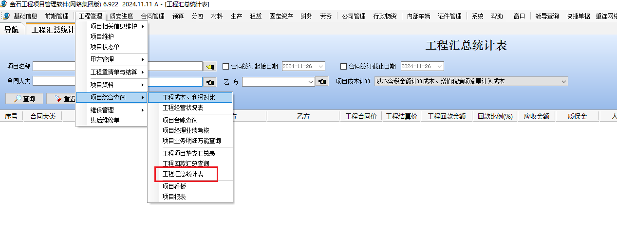 金石軟件更新——新增工程匯總統計表