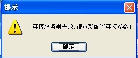 故障一、新裝客戶端無法訪問服務(wù)器,彈出錯(cuò)誤提示:“連接服務(wù)器失敗,請重新配置連接參數(shù)”:如下圖: