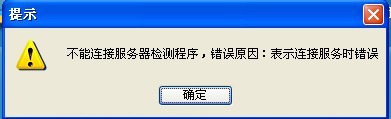 故障四、客戶端無法訪問,彈出錯(cuò)誤提示:“不能連接服務(wù)器檢測程序,錯(cuò)誤原因:表示連接服務(wù)器是錯(cuò)誤”如下圖: