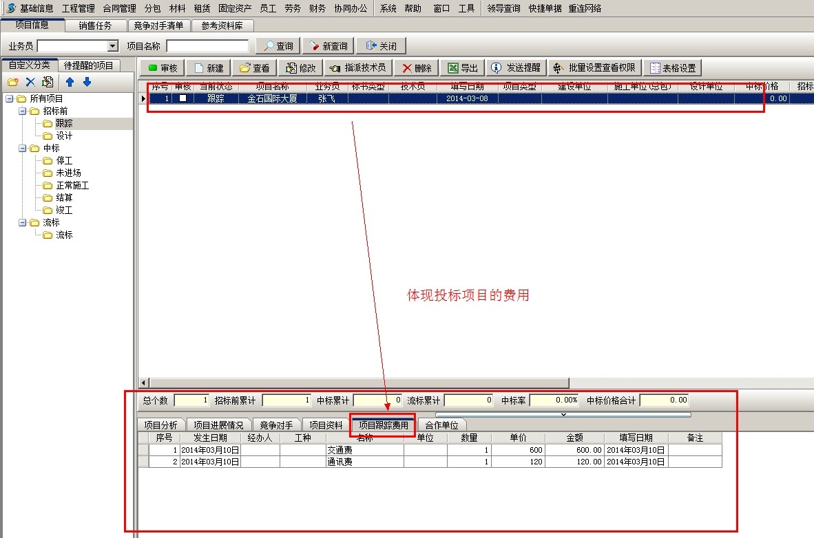 項(xiàng)目開拓建立之后,審核,然后可以錄入投標(biāo)項(xiàng)目的一些基本資料